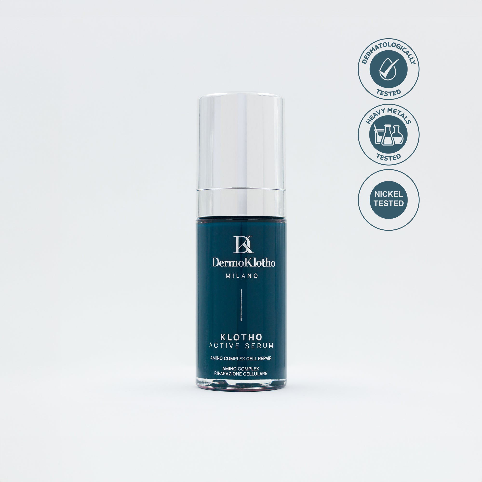 What makes Dermoklotho skincare products unique is the special amino acid blend ‘Highly Efficient Amino Acid Complex’ contained in each of them. Created in our laboratories and the result of over forty years of our scientific research, it is a unique blend that nourishes the epidermis with essential elements. This modulates the production of inflammatory cytokines, in particular IL-6, increasing efficiency and prolonging cells life. These effects reduce the need for a thicker keratinised layer while the protection of the dermis is increased. These are the actual mechanisms by which epidermis ageing and inflammatory processes are counteracted.