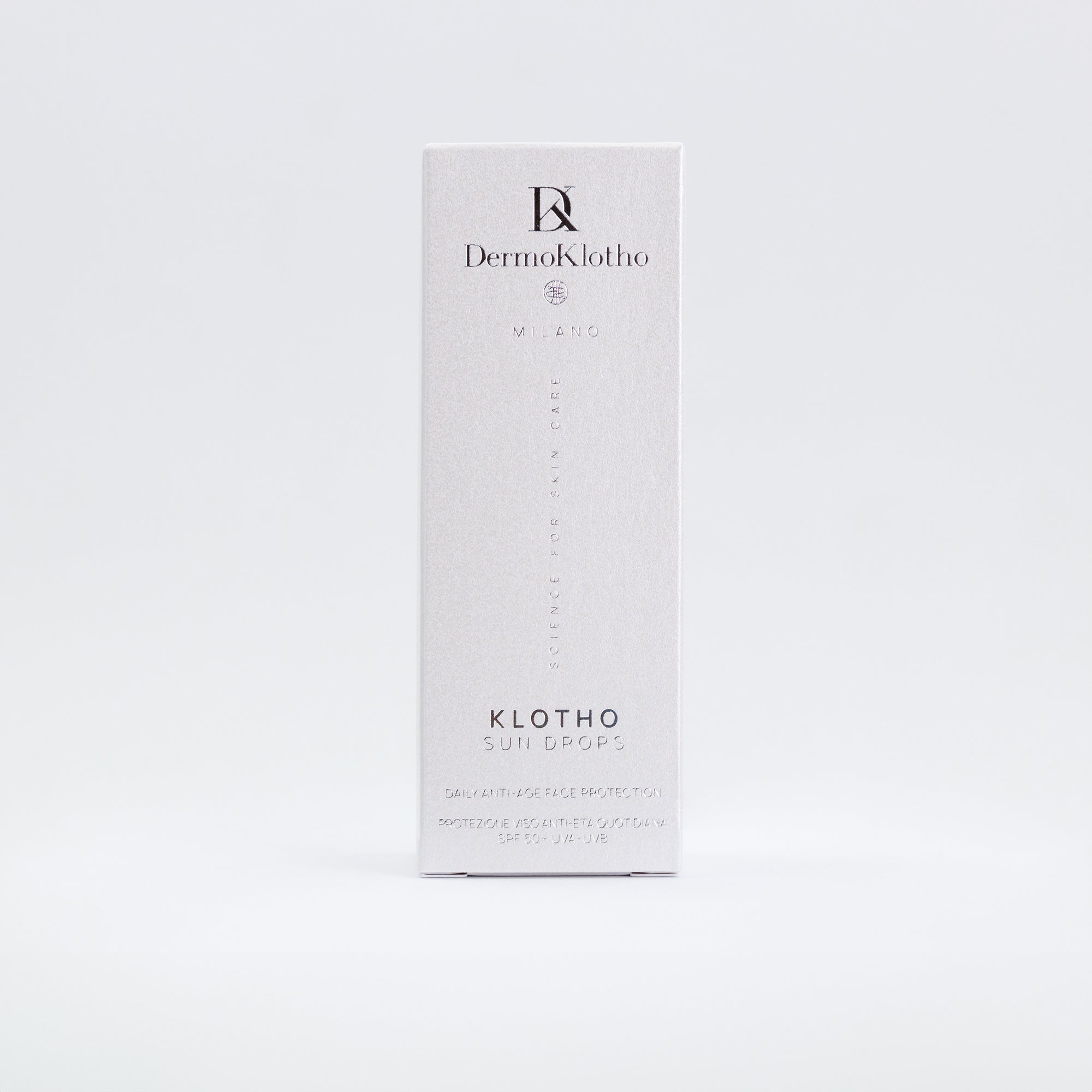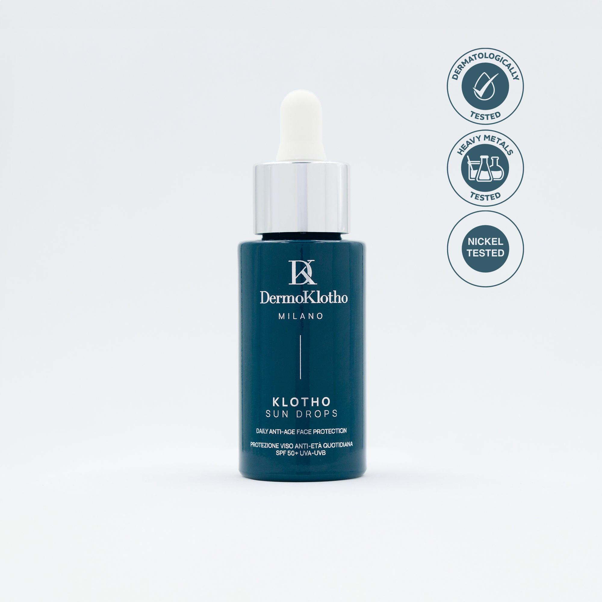 Moreover, to contrast the signs of ageing due to UV exposure, it is important to protect facial skin all year round by using Klotho Sun Drops after your skincare routine and before make-up.
